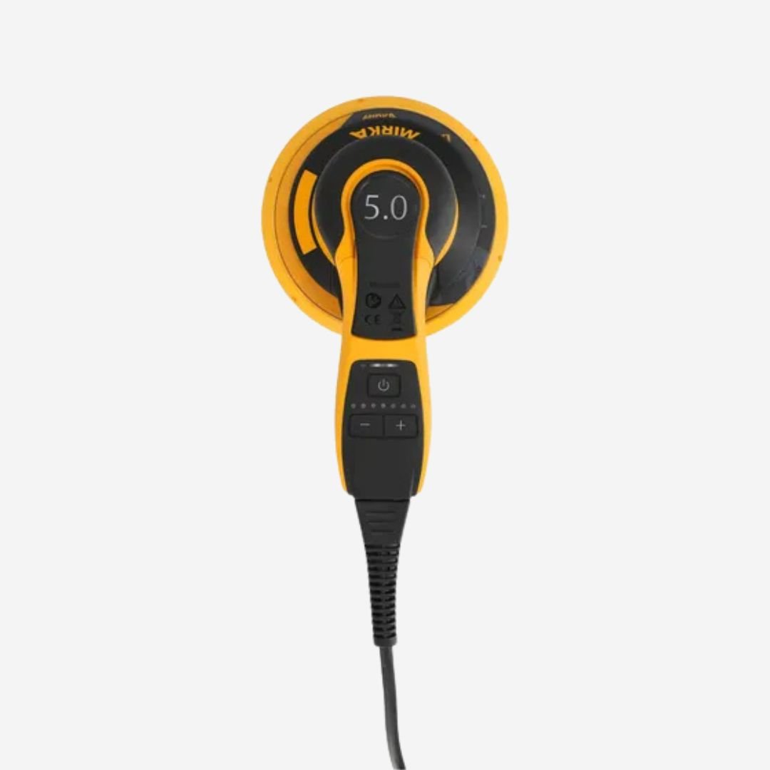 As part of the Mirka dust-free sanding solution, the Mirka DEROS enables efficient dust-free sanding and a Bluetooth connectivity allows seamless integration with the myMirka app for vibration monitoring.